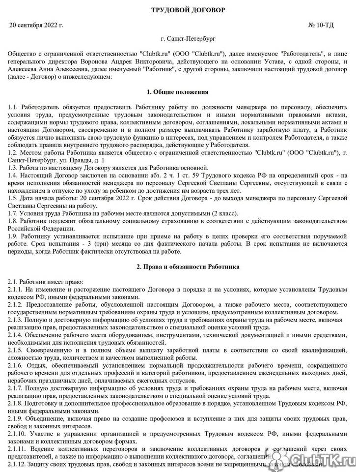 | Испытательный срок | До 2 недель для договоров до 2 месяцев | До 3 месяцев (обычно) |
